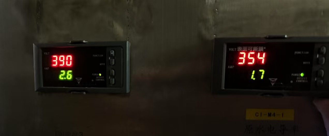通过现场了解,该系统采用的是西门子IP-LXM30Z的EDI膜堆,该膜堆单台额定产水量为3T/H,配备了2台懿博ZSC-2000D,1台ZSC-100D的EDI电源。从现场数据可以知道,电流为2.6A的2台电源是ZSC-2000D,电流为1.7A的1台电源为ZSC-100D。客户反应1.7A电流的EDI膜堆产水水质不达标,电流无法向上调节,这种情况应该如何处理。